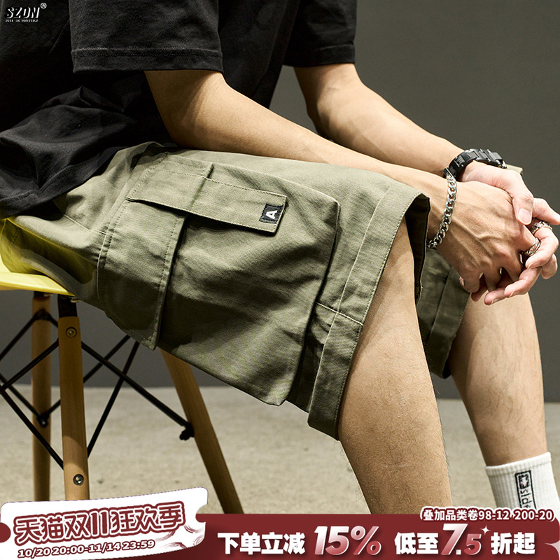 Cargo shorts boys' birthday retro army green trend straight pants Ami click-function cropped pants summer
