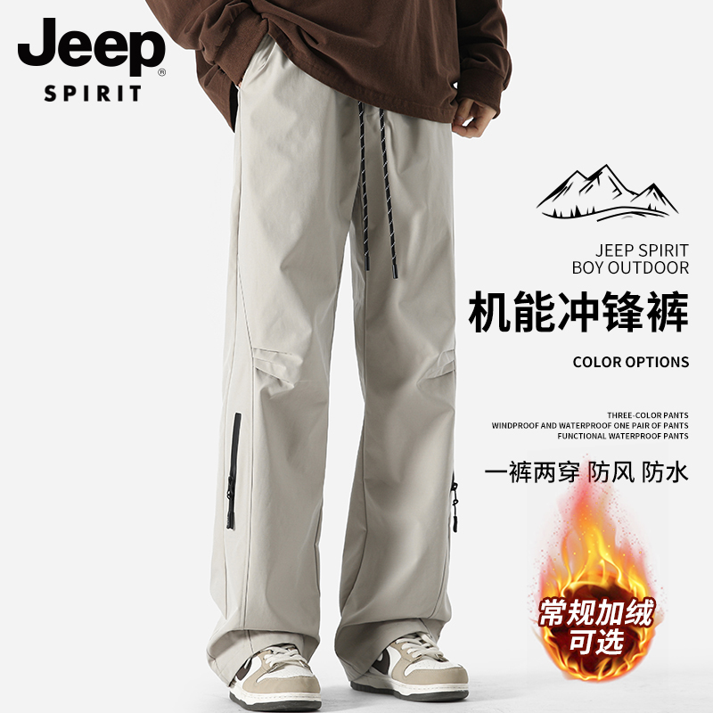 Jeep jacket pants, men's fall and winter fleece, new cargo pants, thickened waterproof men's pants, casual pants, men's trousers