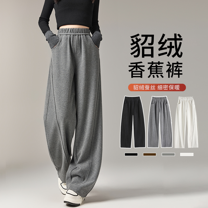 Mink velvet sickle pants women's autumn and winter 2025 new high-waisted drape banana wide-leg pants casual slimming scimitar pants