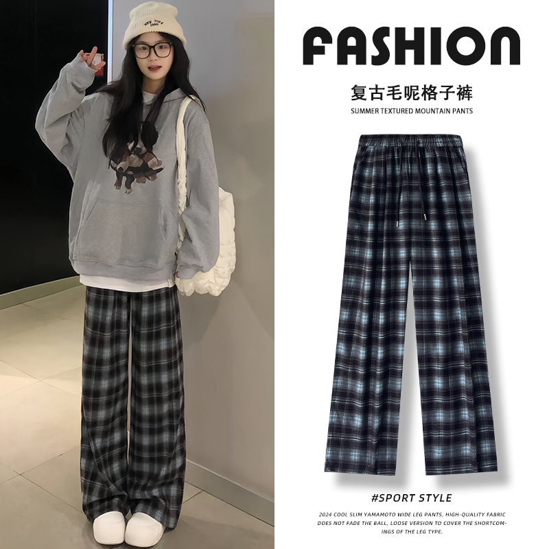 American Retro Plaid Straight Wide-leg Pants Women's Fall and Winter 2025 New High-Waisted Lazy Loose Thickened Fleece Pants