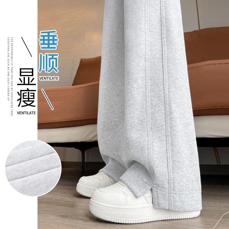 Gray sweatpants women's autumn/winter 2025 new drape loose wide-leg pants small casual fleece thickened sweatpants