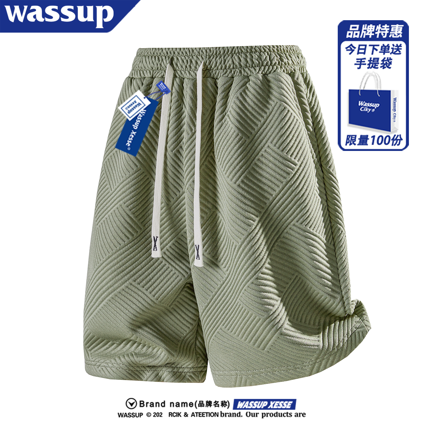 WASSUP American casual shorts men's summer thin loose versatile drape beach pants straight cropped pants