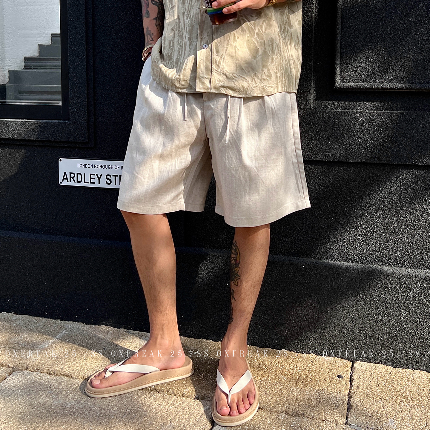 OXFREAK "Old Money Style Tencel Linen" Solid Color Casual Shorts Men's Thin Straight Loose Five-Point Mid-Pants