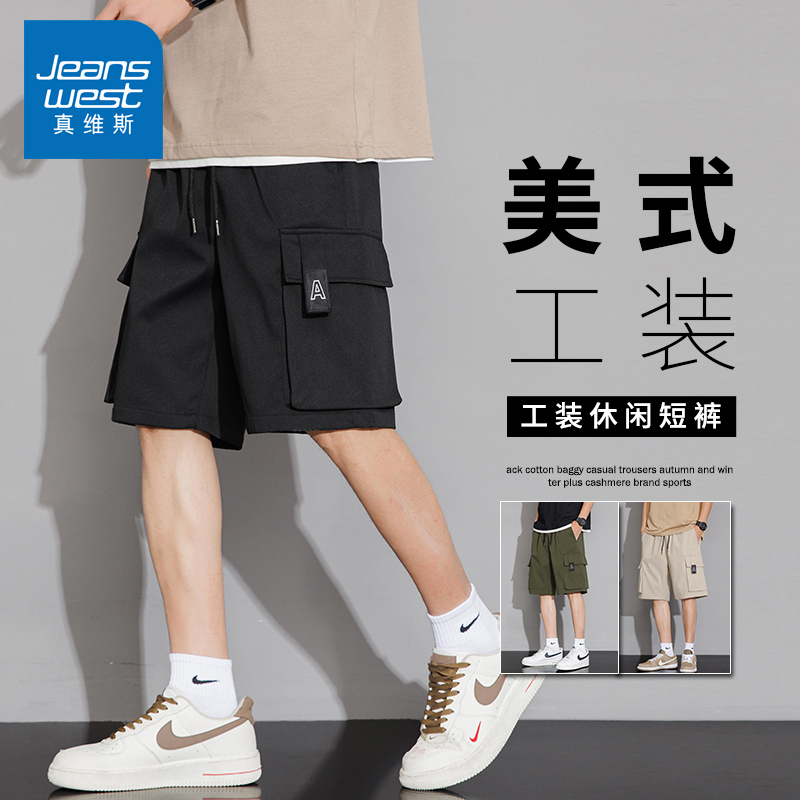 Zhenweisi American Cargo Shorts Men's 2024 New Loose Summer Thin Casual Cropped Pants Men's Shorts