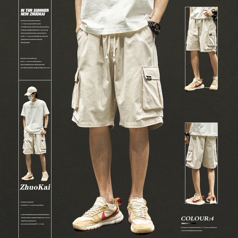 2025 New Cargo Shorts Men's Summer American Casual Loose Cropped Mid-Pants Boys wear summer men's clothing outside