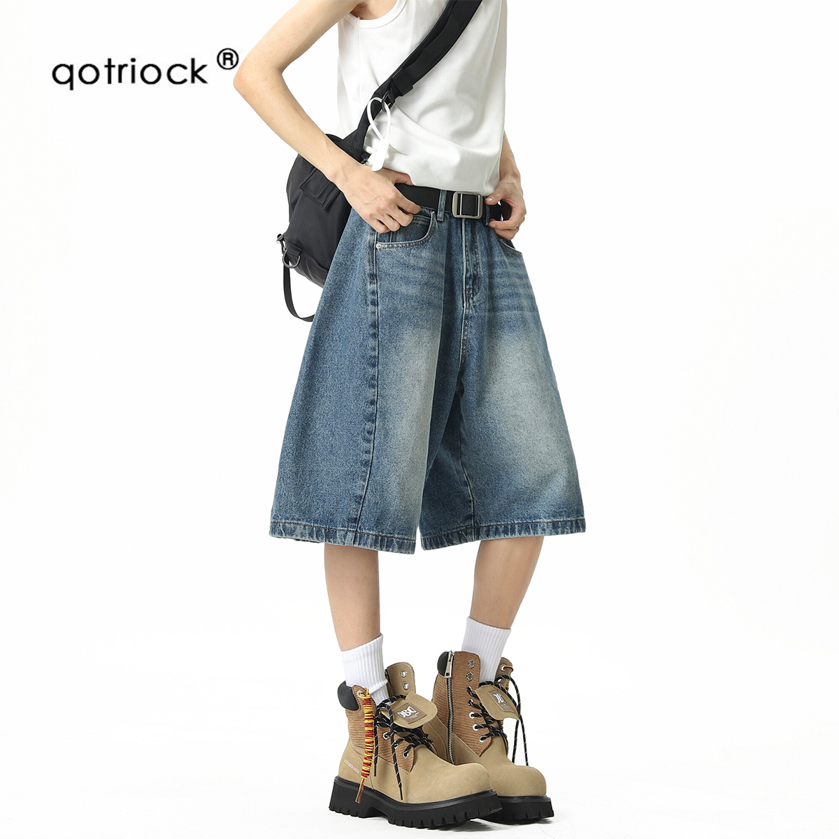 Jin Jing's same straight-leg denim trousers for men and women's new trendy brand Vintage wide-leg scimitar cropped pants for men's and women