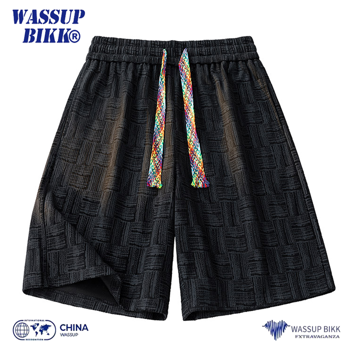 WASSUP BIKK American check drawstring shorts men's summer loose beach pants casual sports cropped pants