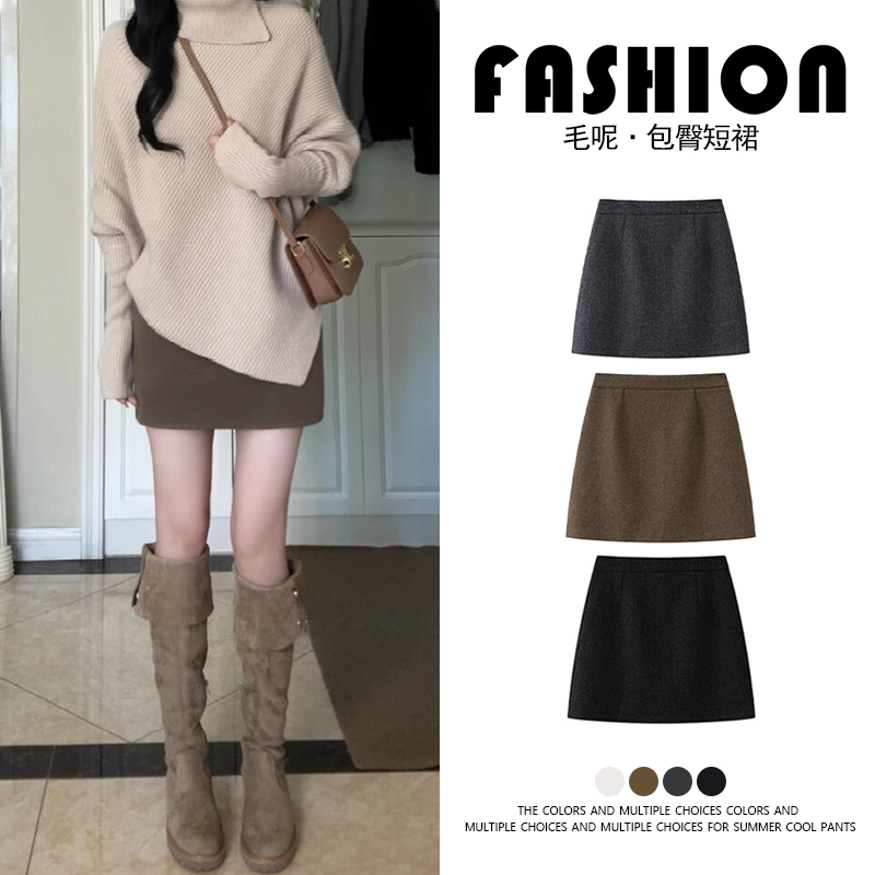 Tweed short skirt women's spring, autumn and winter 2025 new high-waisted slimming A-line skirt small tight hip-hugging skirt