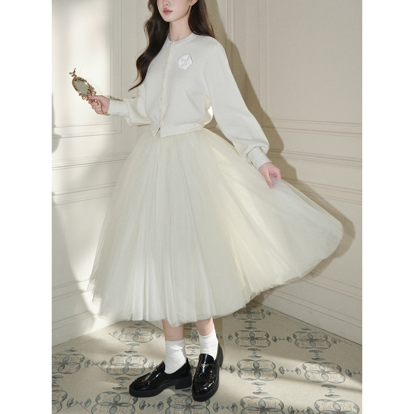 avenement/French mesh skirt, midi skirt, court style, classical A-line puffy skirt, gauze skirt girl