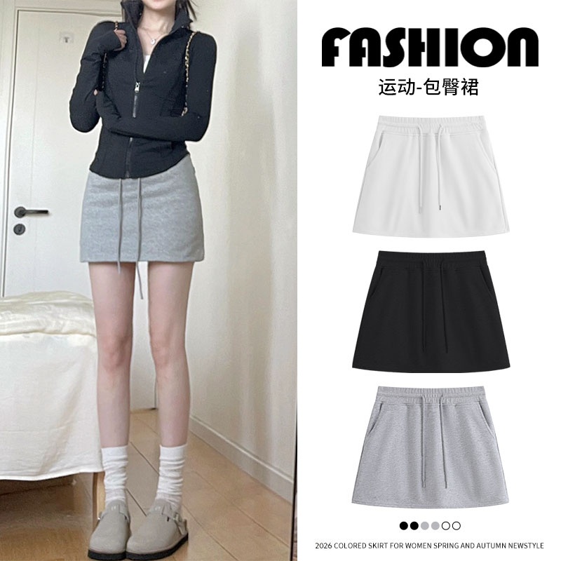 Gray sports short skirt women's autumn high-waisted A-line skirt Guard skirt hip-hugging skirt summer anti-naked culottes