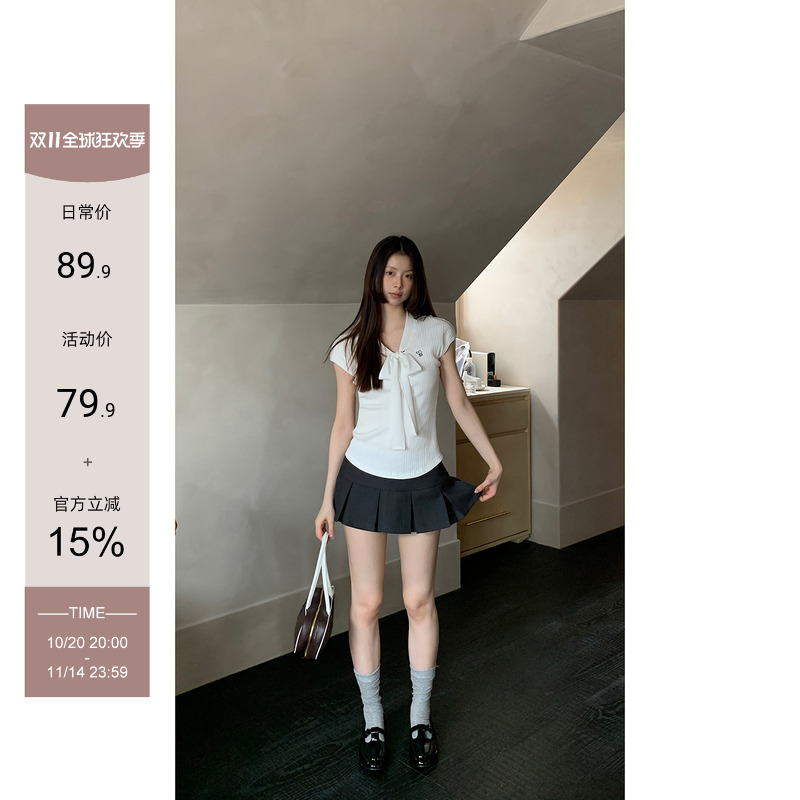 Celebrity Pavilion A-line skirt women's summer 2025 new hip-hugging pleated skirt, small low-waisted skirt, gray short skirt