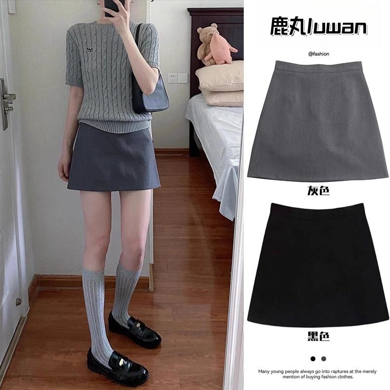 Gray suit skirt women's autumn new high-waisted slimming A-line skirt hip-hugging skirt summer black skirt