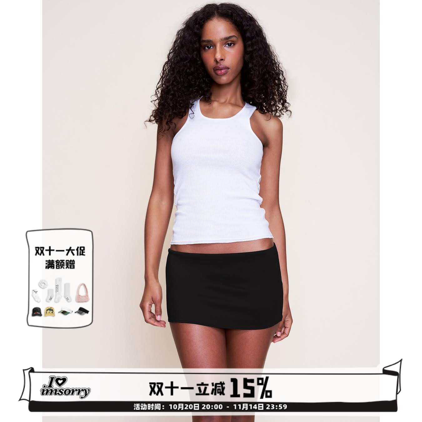 Guizio low-rise stretch hip-hugging skirt black and white solid leopard print versatile mini skirt with safety pants inside