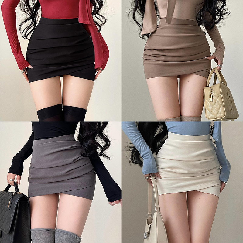 [Wearable in all seasons] pure desire sexy high-waisted slimming belt safety pants anti-light pleats hip-hugging skirt short skirt