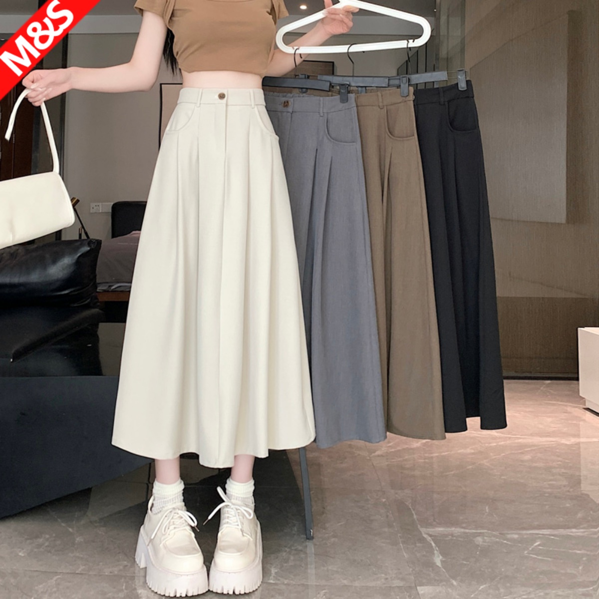 Beautiful little beautiful acetate wool 6-piece skirt [one-click hidden meat] inward fold elastic waist autumn and winter long skirt pocket skirt
