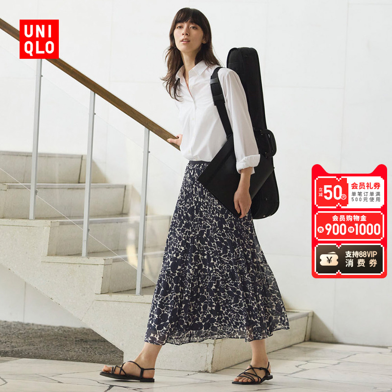Uniqlo Women's Chiffon Long Skirt/Layered Slimming Skirt Skirt 480810