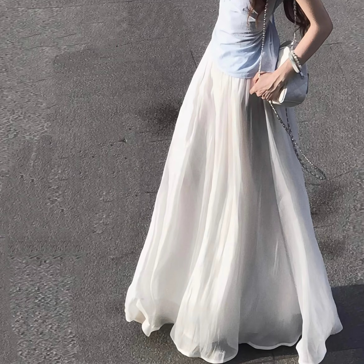 雪纺网纱百褶半身裙女夏季2025新款高腰显瘦垂感a字伞裙大摆长裙