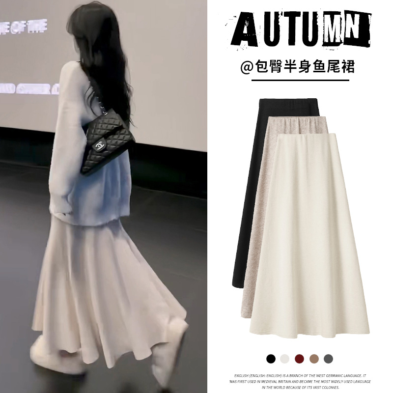 针织鱼尾裙女2025新款秋冬温柔气质高级感修身白色a字包臀半身裙