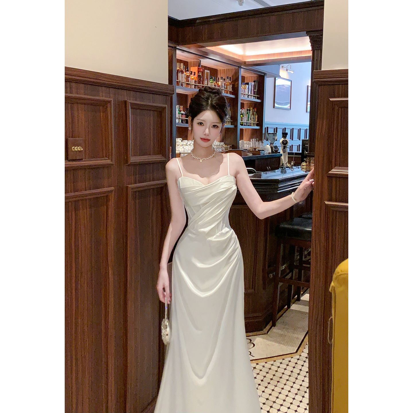 From a moment [Creator God] white halterneck camisole dress women's summer satin fishtail high-end long skirt