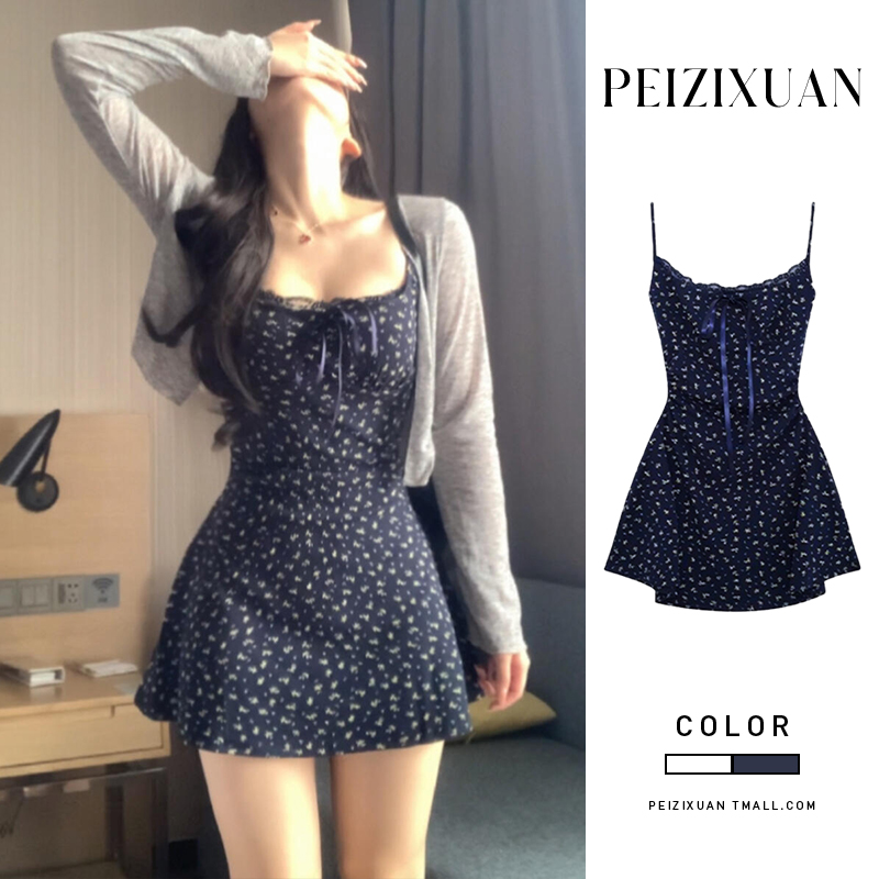 French blue floral camisole dress women's early autumn 2025 new small temperament hip skirt short skirt