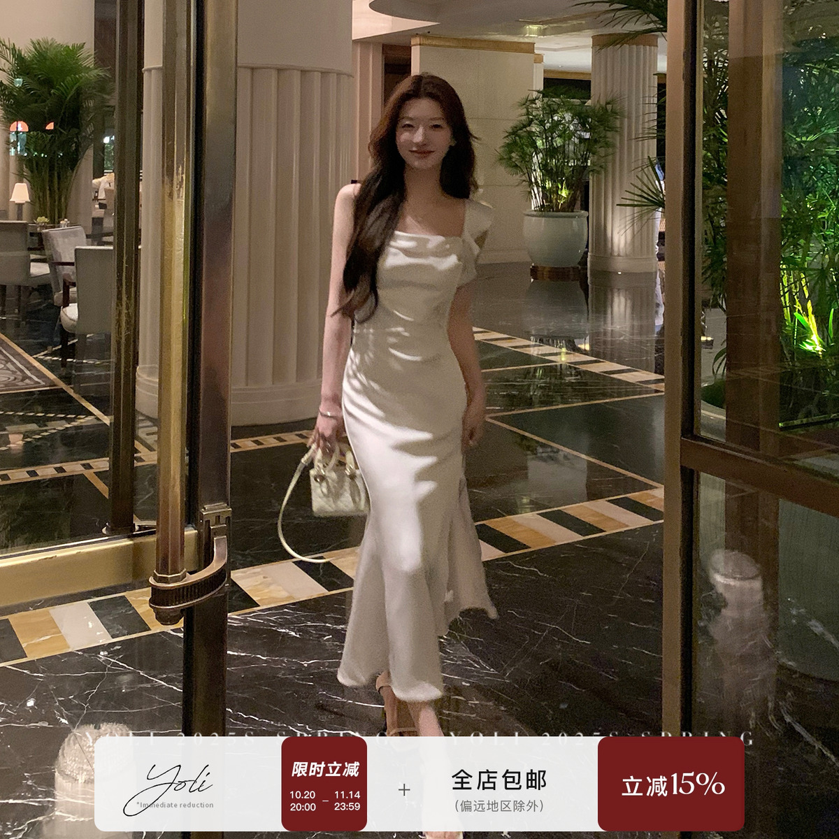 YOLI Zhang Youli "banquet protagonist" design sense niche satin dress female summer waist slimming sundress