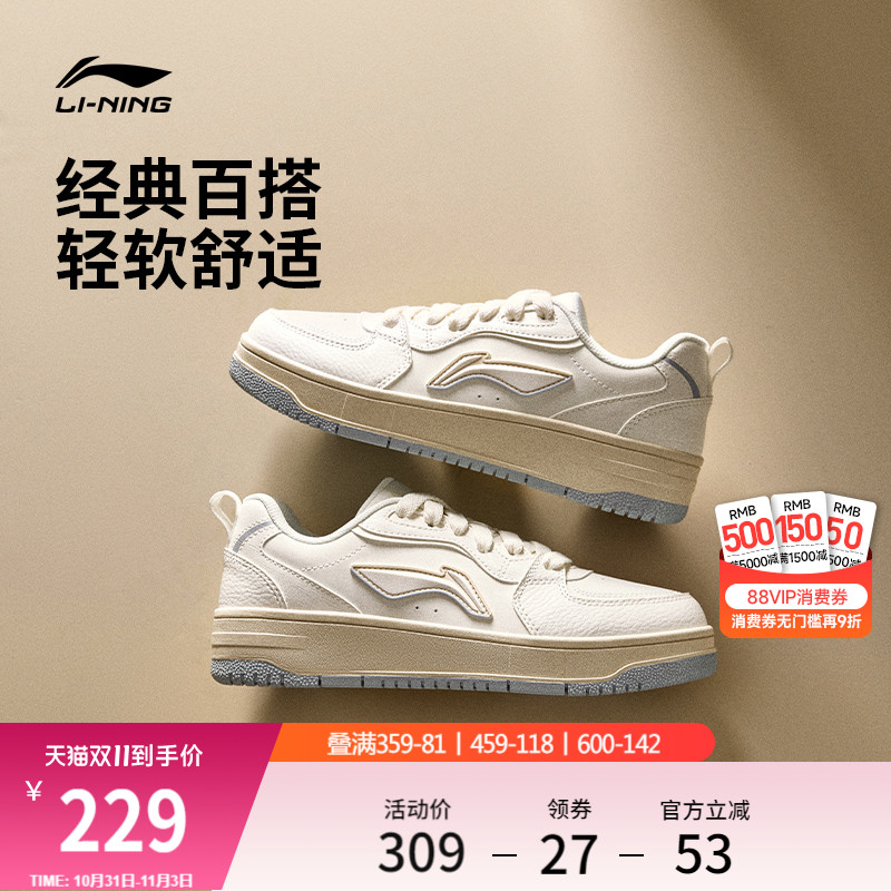 Li Ning Yuebai 3丨Board shoes, men's shoes, autumn and winter, new versatile white shoes, comfortable shock-absorbing casual shoes, women's sneakers