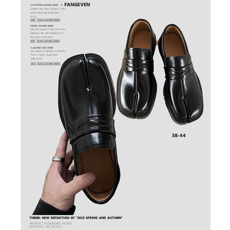 Fang even tab-toe horseshoe shoes for men and women ugly and cute couples thick-soled loafers patent leather square toe overs and foot leather shoes trend