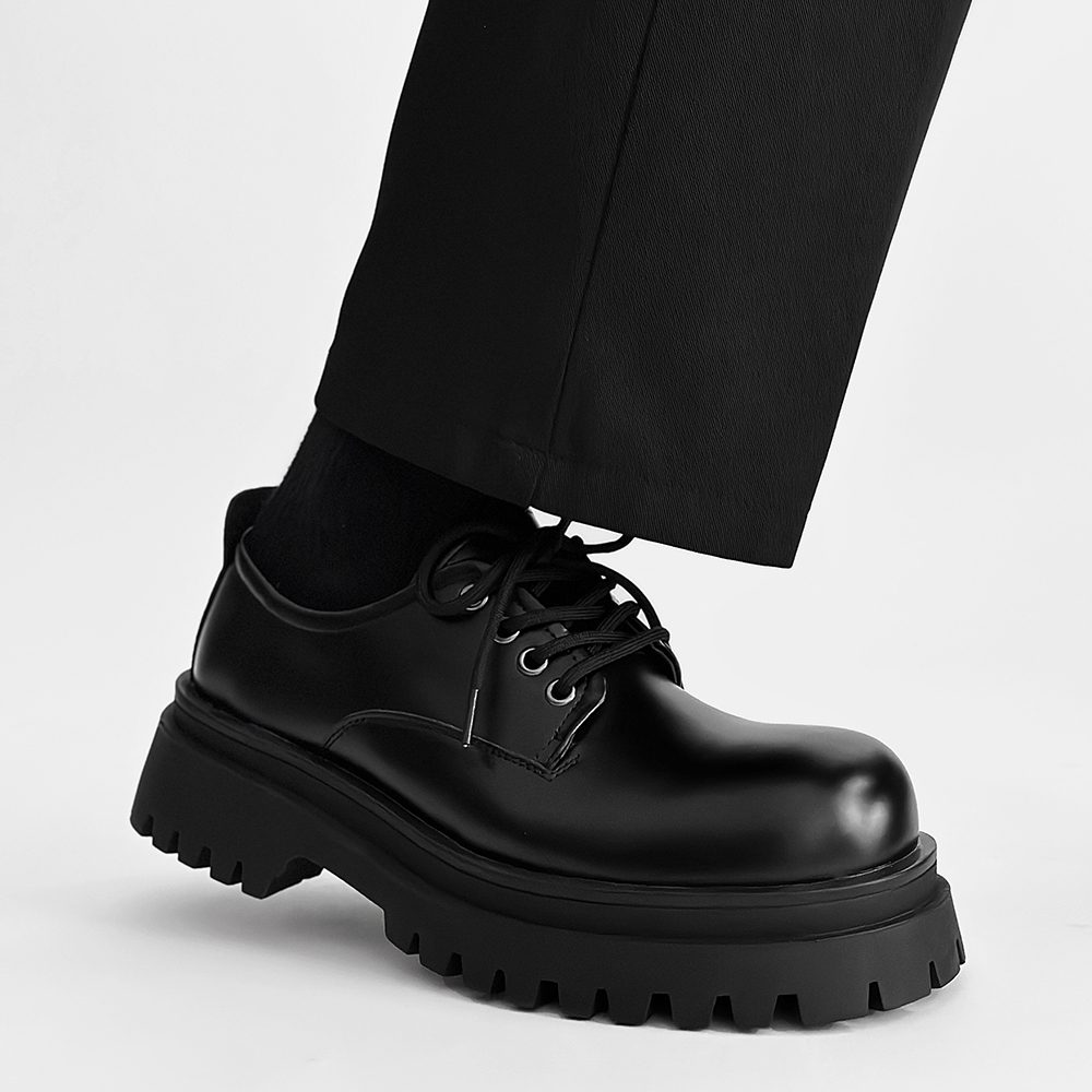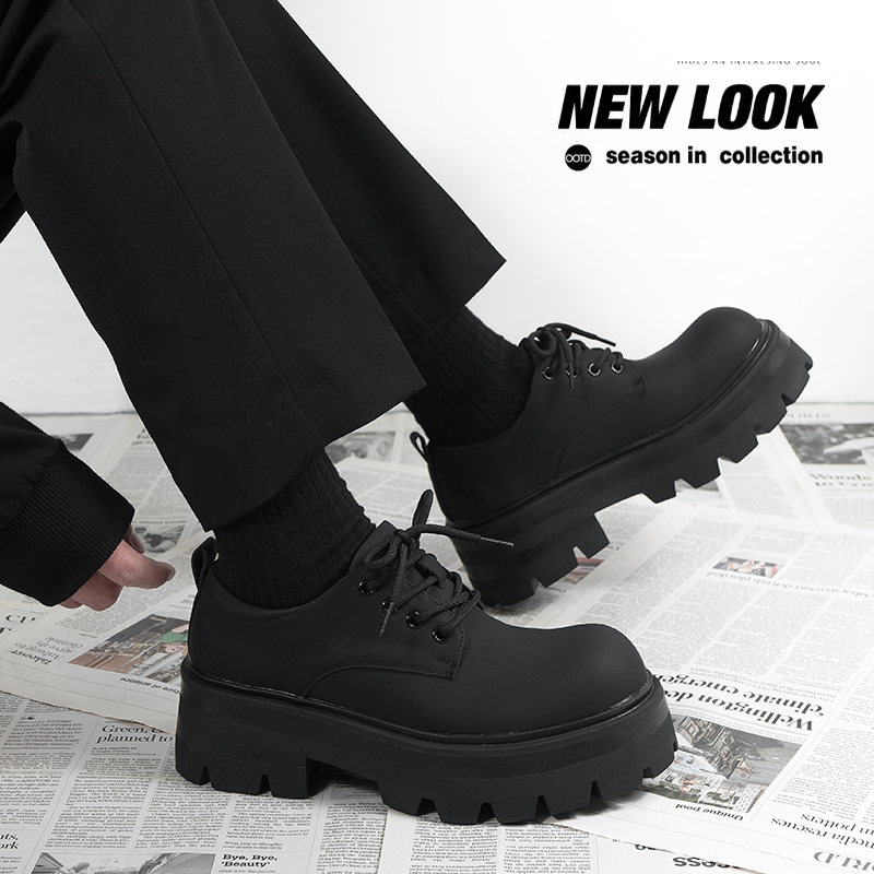 Thick-soled heightening shoes, derby shoes, men's new matte high-end men's casual black British style leather shoes