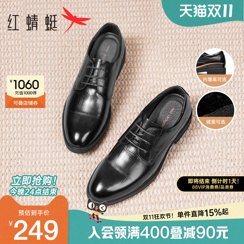 Red dragonfly men's shoes business formal leather shoes men's leather heightening derby shoes young people wedding groom shoes men
