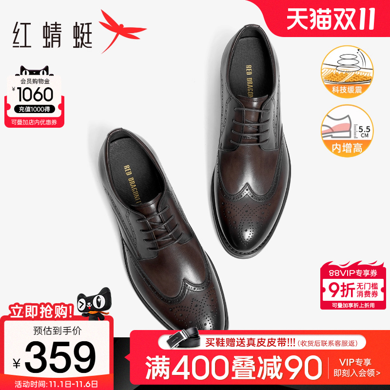 Red dragonfly black knight leather shoes men's new leather brogue men's business formal wear height increase wedding groom shoes men