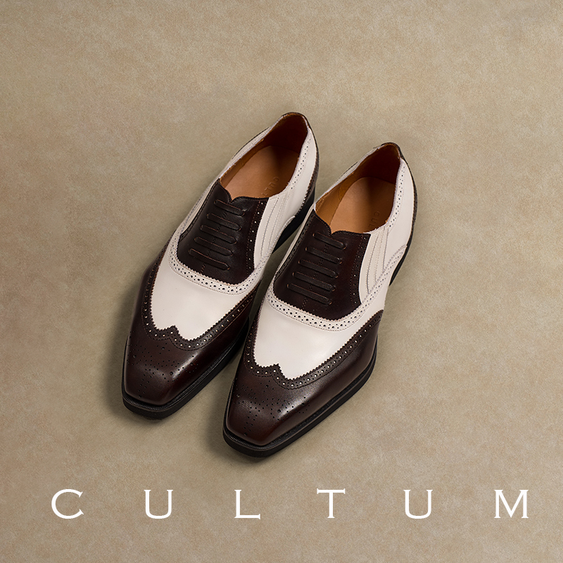 CULTUM opening men's leather shoes vintage leather three-joint color block oxford shoes wedding groom business men's shoes