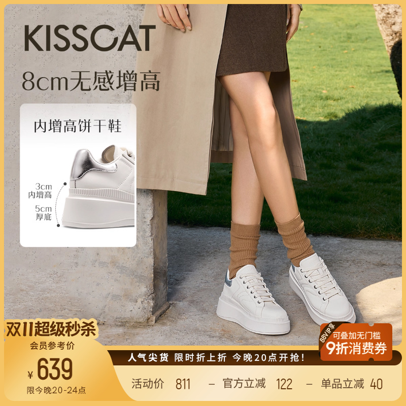 Xu I dazzled Xu Yan Lusi/Tian Xiwei the same kissing cat 8cm inner height increase casual board shoes thick-soled white shoes