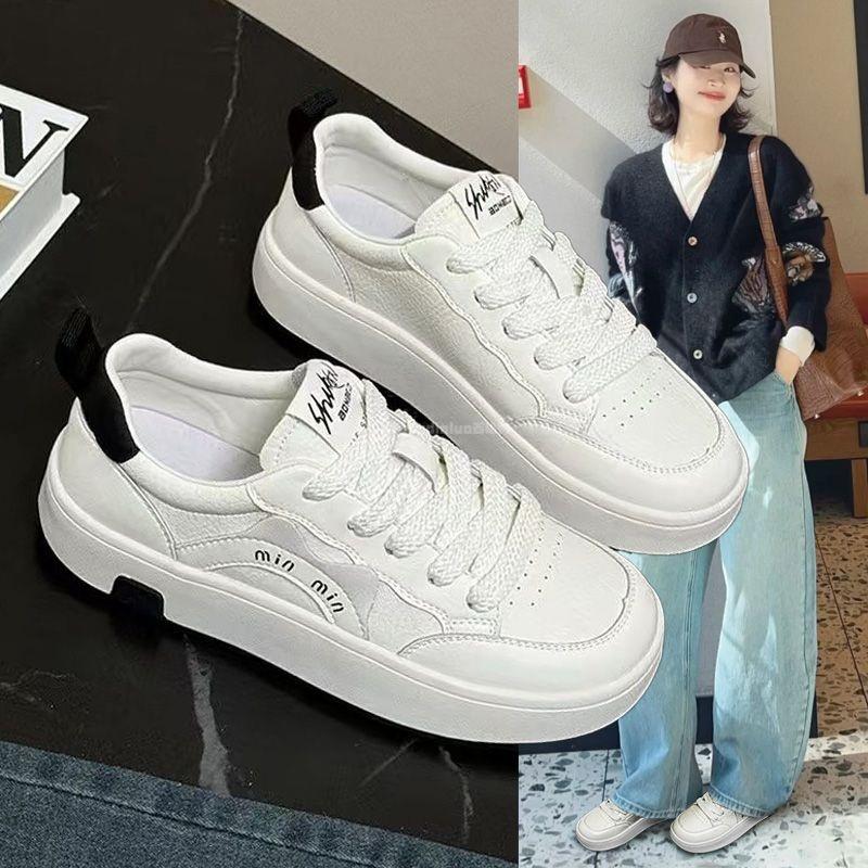 Hong Kong leather platform lace-up white shoes women's 2025 autumn new versatile fashion casual board shoes sports moral training shoes