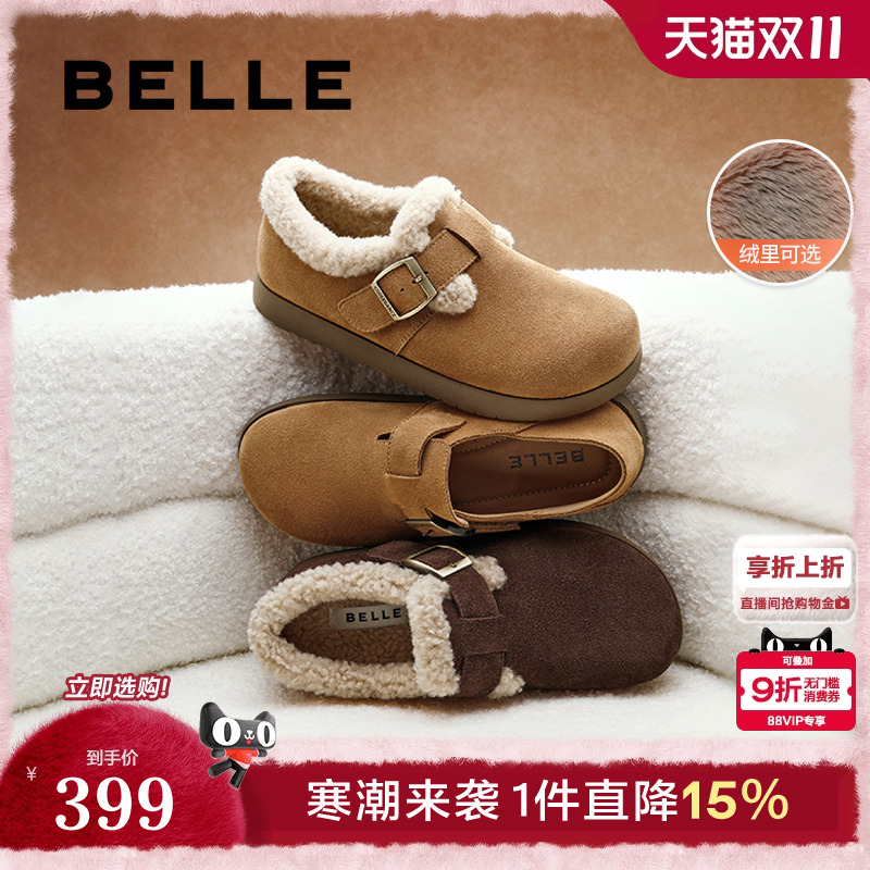 Belle platform Birkenstock cotton shoes women's new winter snow boots two non-slip plush all-inclusive loafers pre-