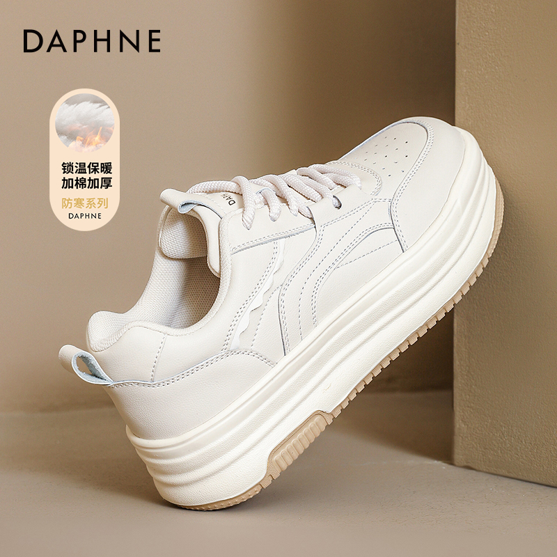 Duff platform white shoes, women's leather new winter fleece cotton shoes, versatile height-increasing breadboard shoes, student 2025