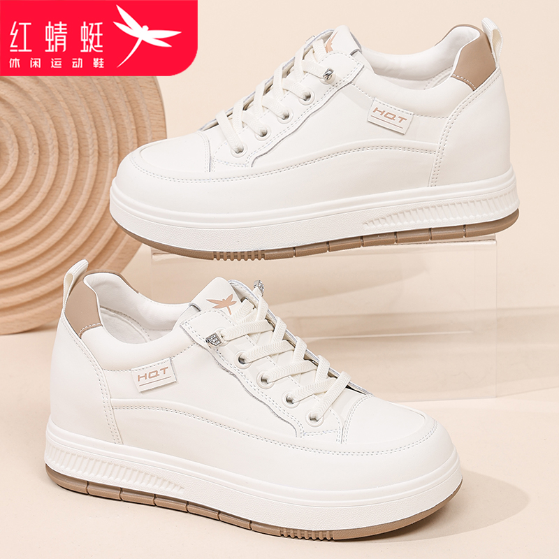Red Dragonfly 2025 new autumn explosive soft-soled athleisure board shoes, thick-soled versatile, inward heightening little white shoe girl