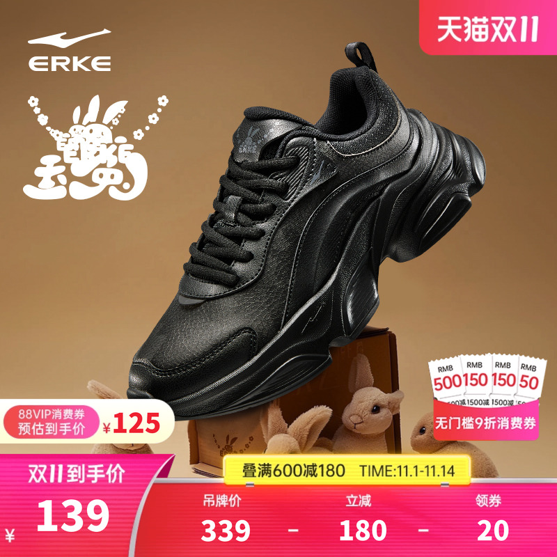 Hongxing Erke Jade Rabbit Women's Shoes Sneakers Autumn New Casual Shoes Black Shoes Thick Sole Height Increase Daddy Shoes Girl