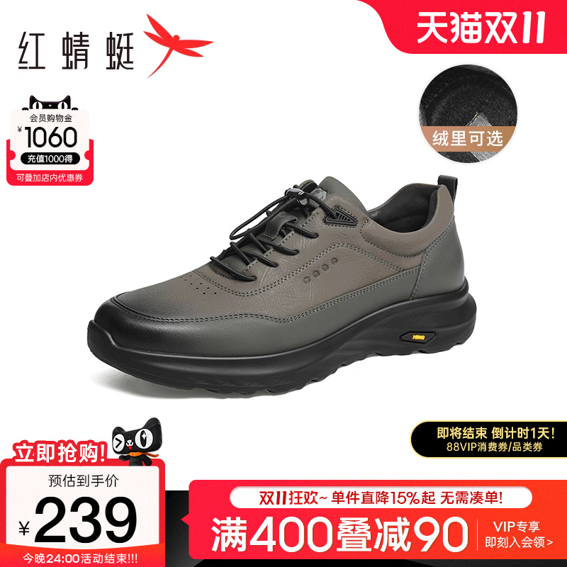 Red Dragonfly Outdoor Sneakers Men's Autumn New Anti-Slip Breathable Men's Shoes Middle-aged and Elderly Dads Casual Leather Shoes Men
