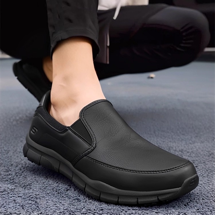 Skechers Men's Shoes Spring and Autumn Black Slip-On Slip-On Casual Shoes Business Leather Shoes 77157