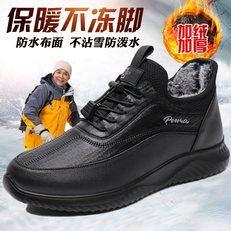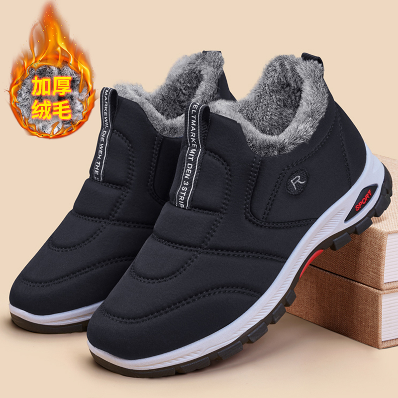 Old Beijing cloth shoes men's winter warmth fleece thickened waterproof snow boots for middle-aged and elderly non-slip dad cotton shoes
