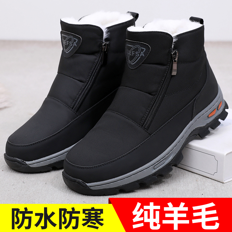 Winter genuine pure wool old Beijing cloth shoes men's cotton shoes fleece warm dad shoes middle-aged Northeast high-top cotton boots