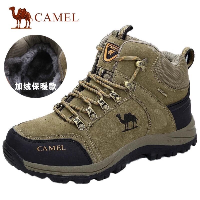 Clearance camel fleece warm cotton shoes men's leather high-top outdoor hiking shoes winter snow boots special