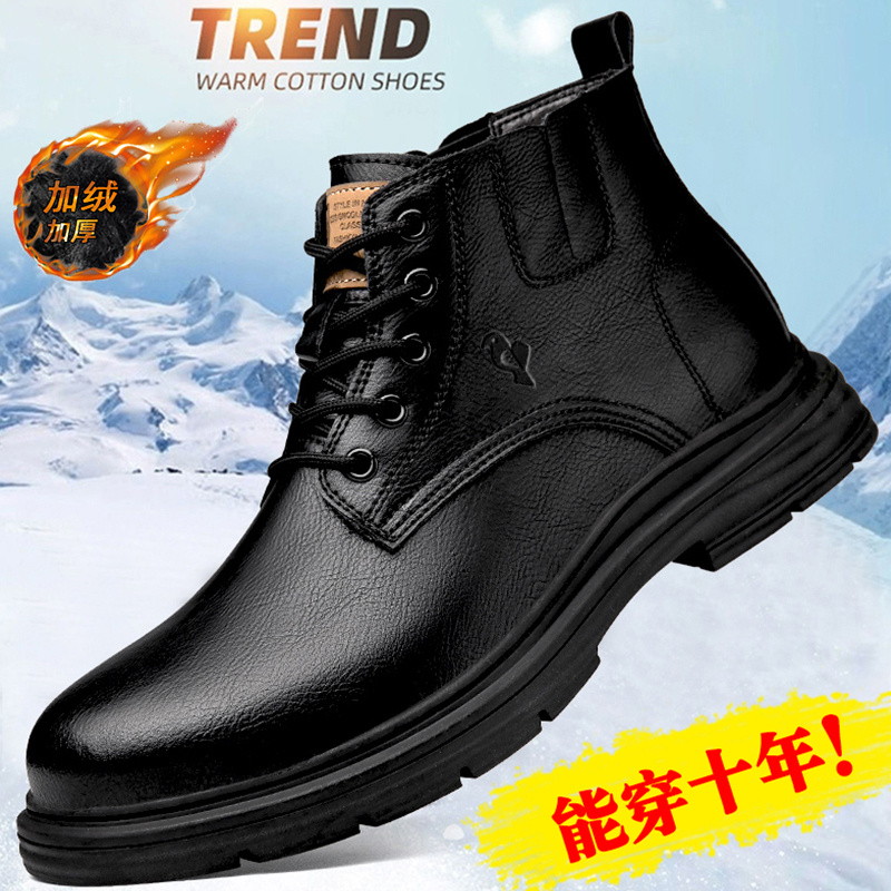Yierkang men's shoes 2025 new winter genuine leather fleece warm men's high-top leather shoes middle-aged and elderly dad cotton shoes