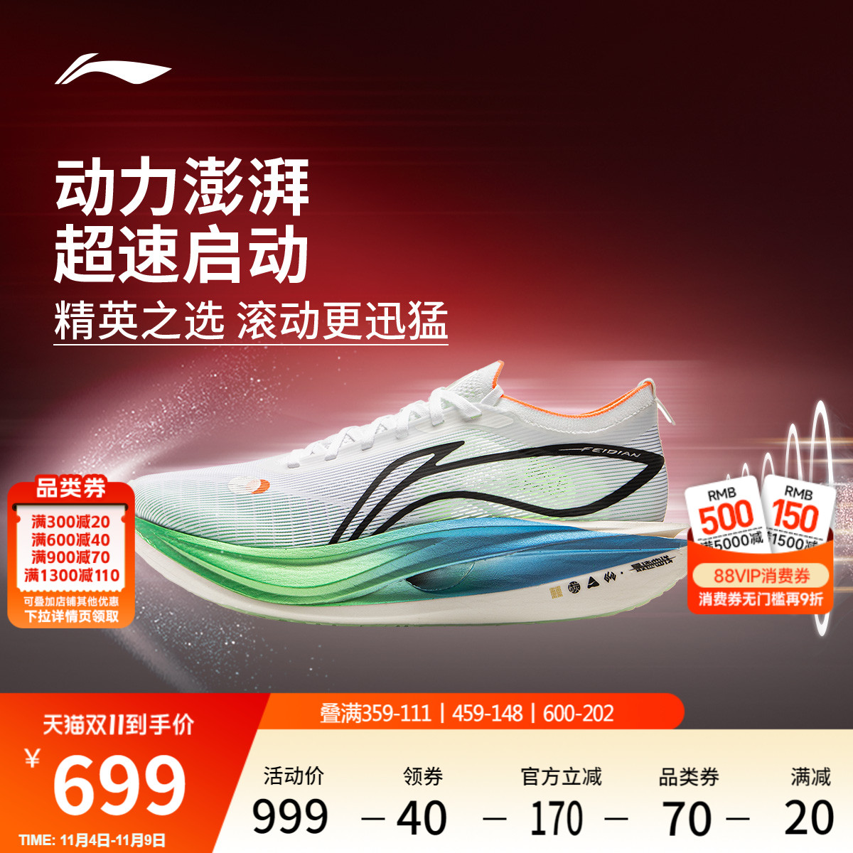 Li Ning Feidian 5ELITE | Super three running shoes men's and women's rebound carbon plate racing marathon sneakers