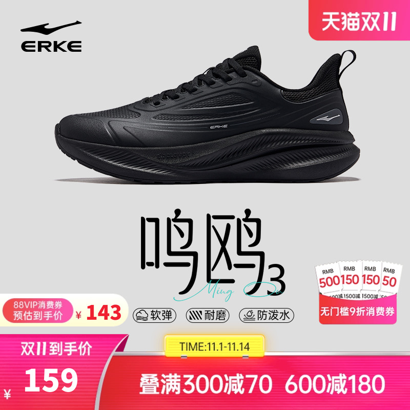 Lingyue 2 Hongxing Erke men's shoes leather waterproof running shoes black official shoes fleece sneakers soft-soled running shoes