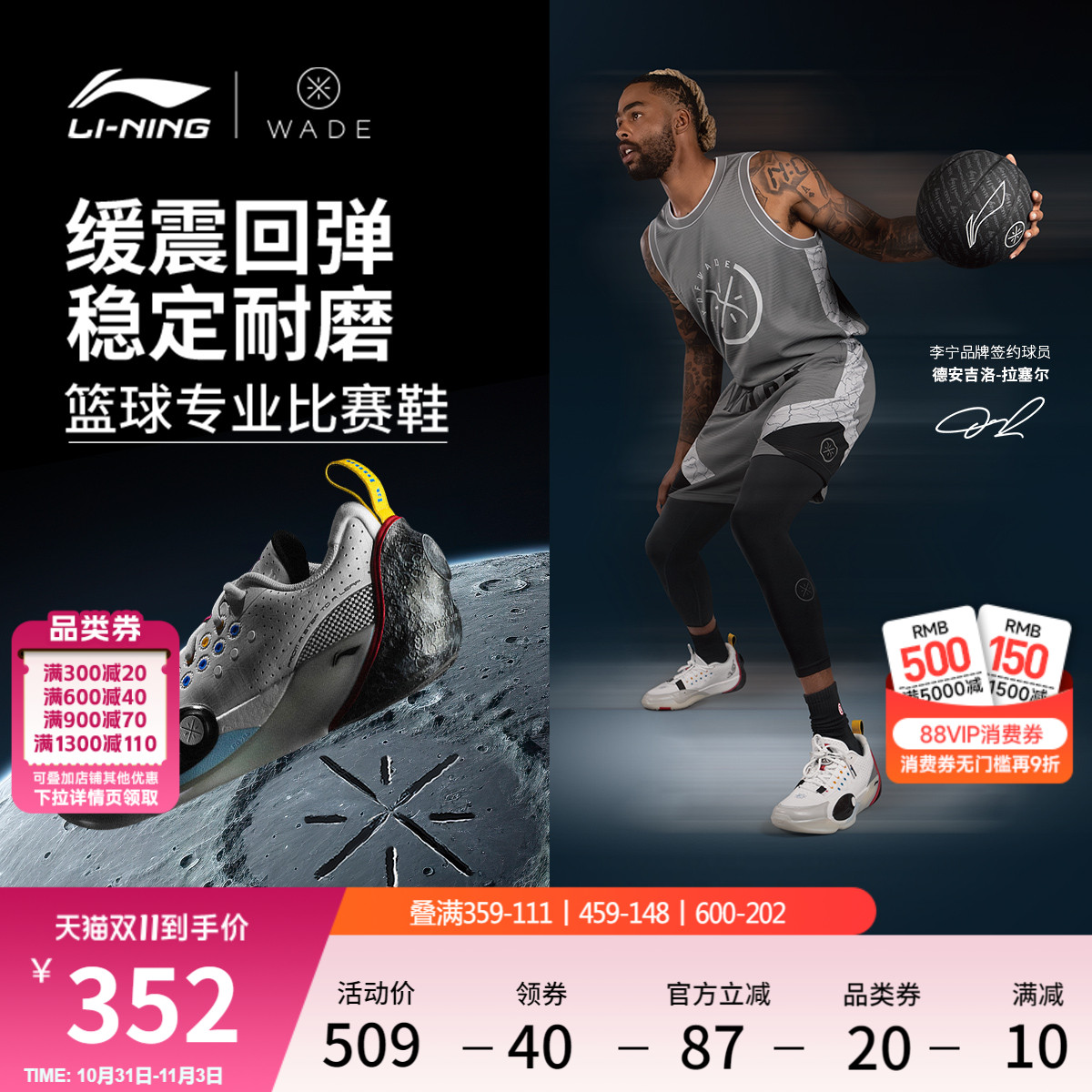 Li Ning DLO 1 Russell Generation丨Basketball Shoes Men's Lightweight, Breathable, Non-Slip, Cushioning, Practical Low-Top Sneakers