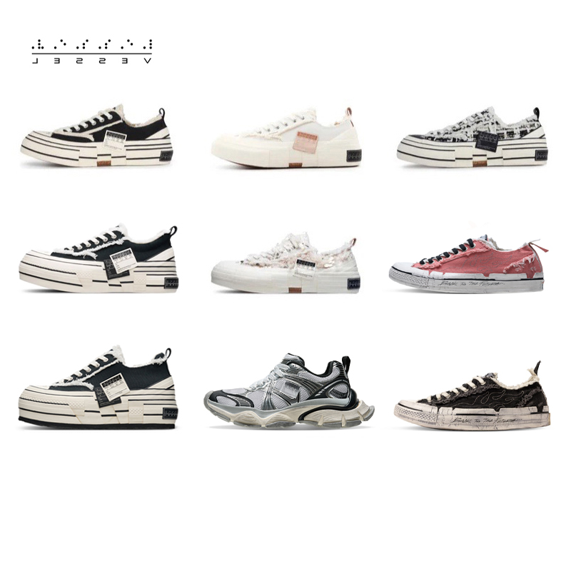 Wu Jianhao xvessel double-sided label of the same vulcanized shoes, Kongshanji daddy shoes, co-branded low-top platform canvas shoes