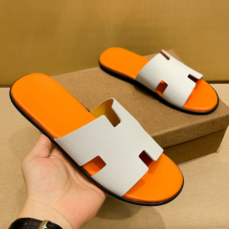 Genuine leather H slippers plus size sandals trendy summer men wear non-slip beach shoes fashionable soft-soled cowhide slippers