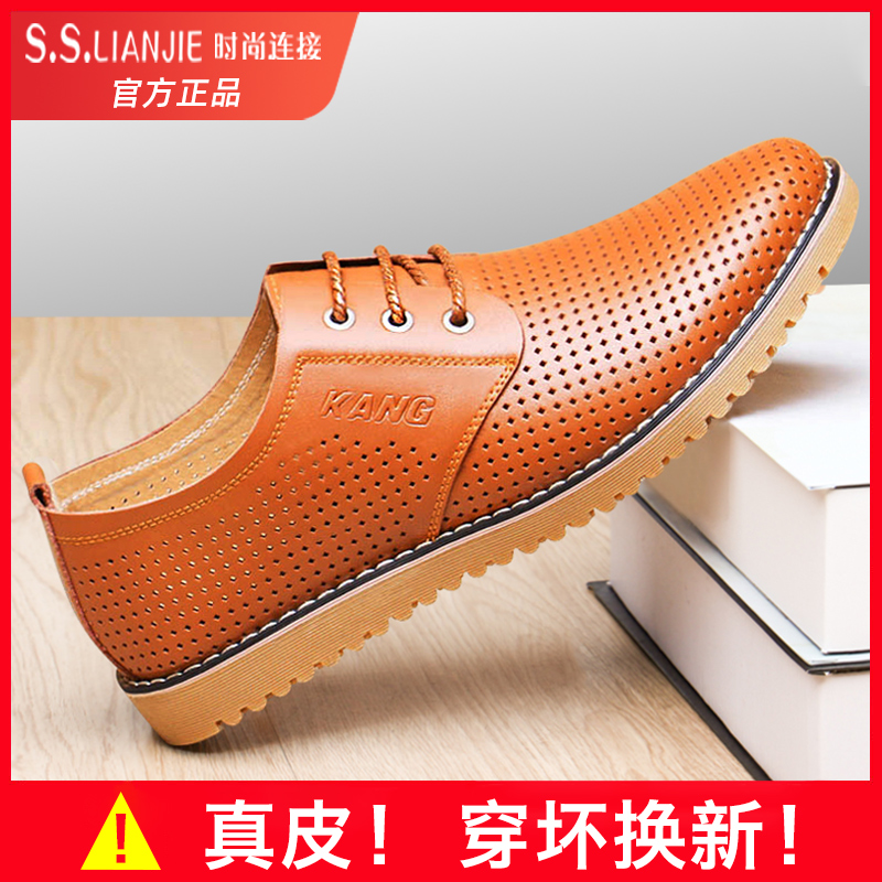 Woodpecker men's shoes summer hollow hole shoes leather breathable business casual leather shoes men's single-layer soft-sided work shoes