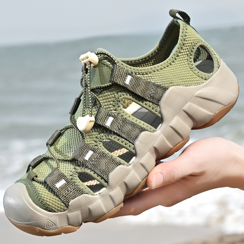 2025 New Summer Breathable Sandals Men's Baotou Outdoor Wading Anti-Slip and Anti-Odor Couple Hole Beach Shoes Big Boy